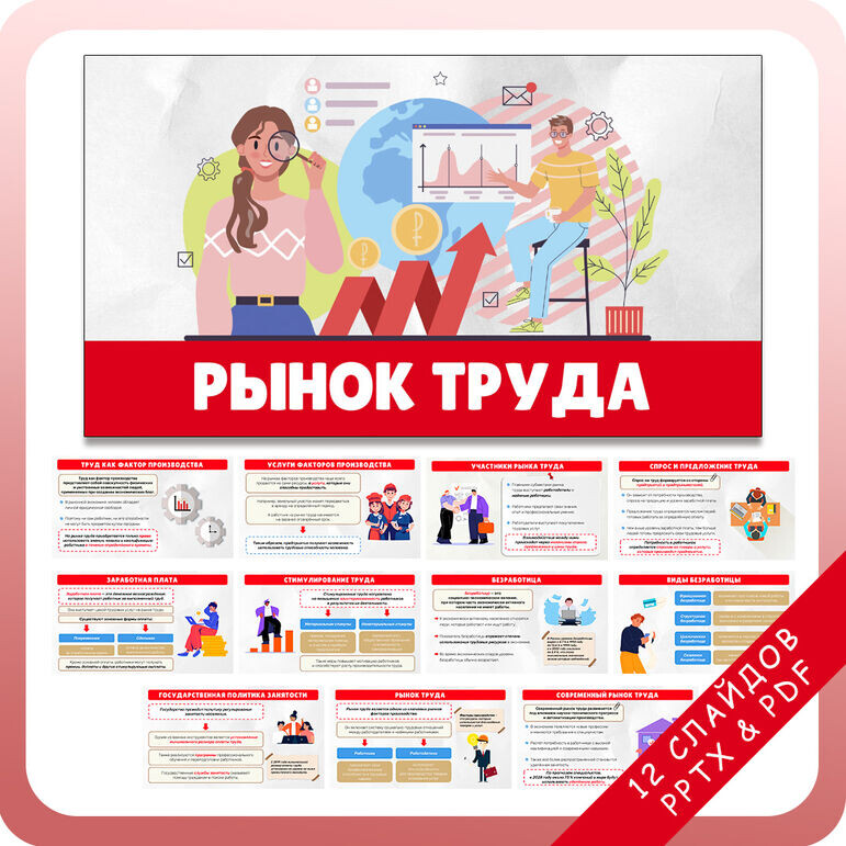 • Современные тенденции рынка труда Материал выстроен последовательно — от базового понимания труда как экономического ресурса к анализу функционирования рынка труда, заработной