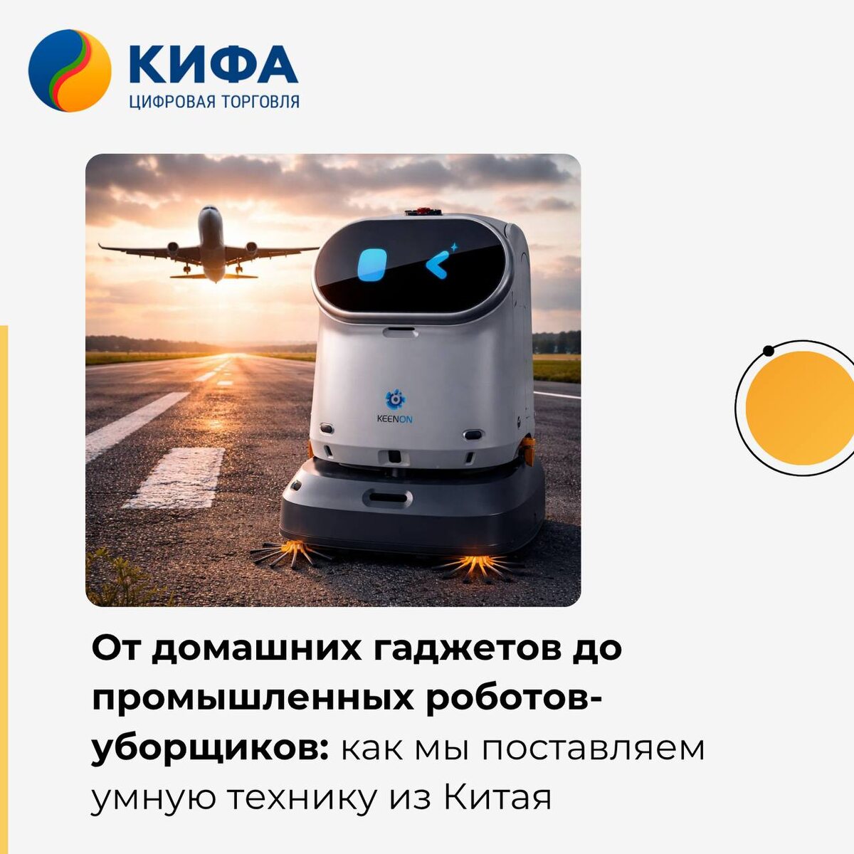 Помните, недавно мы обсуждали гаджеты для животных? Тренд на умную технику всё больше растет, и сегодня он охватывает не только бытовые нужды, но и масштабные инфраструктурные проекты. Сегодня рассказываем о нестандартной задаче, которую поставил перед нами один из крупнейших аэропортов России. ▶️О проекте На днях команда КИФА провела переговоры о масштабной роботизации одного из главных аэропортов страны. Наша задача — помочь партнерам реализовать амбициозный план по полной автоматизации клининга и сервисного обслуживания помещений. Для такого гиганта стандартных решений недостаточно, поэтому мы прорабатываем поставку целого пула умной техники: ☑️ Роботы-клинеры для терминалов и залов ожидания ☑️ Беспилотная спецтехника для поддержания чистоты на парковках ☑️ Роботизированные модули для дезинфекции сантехники ☑️ Роботы-трекеры, способные самостоятельно находить и возвращать багажные тележки на базу Китай сегодня — абсолютный лидер в производстве сервисных роботов. Команда КИФА уж