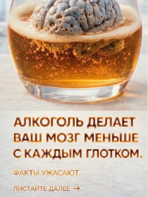 И моя позиция к алкоголю. Как человек, который не пьёт уже больше 6,5 лет, могу сказать: алкоголь действительно влияет на мозг. Даже умеренное употребление связано с уменьшением объёма мозга, ухудшением памяти, концентрации и скорости мышления. 🧠 страдают зоны, отвечающие за память 🧠 ухудшается концентрация 🧠 снижается скорость принятия решений И дело не только в запоях. Регулярный «один бокал вечером» — это тоже вклад. Алкоголь: — нарушает связи между нейронами — ускоряет старение мозга — ухудшает восстановление нервной системы Ты это чувствуешь как: 😶 туман в голове 😴 постоянную усталость 🤯 сложности с принятием решений Но есть и хорошая новость: Мозг умеет восстанавливаться. Чем раньше ты снижаешь или полностью убираешь алкоголь, тем больше шансов вернуть ясность, энергию и контроль. Каждый выбор имеет последствия. И каждый отказ — тоже 💭 Исследования показывают, что даже умеренное употребление алкоголя связано со снижением объёма мозга и ухудшением когнитивных