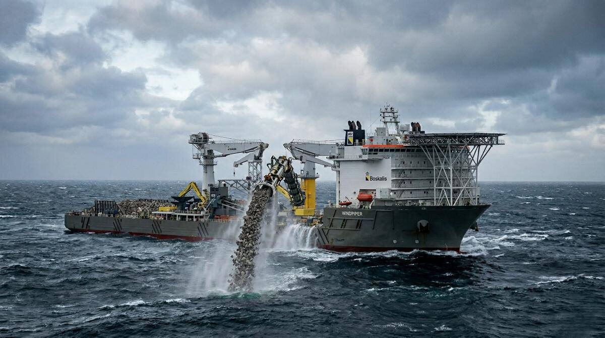 ! 🌊 Это не просто корабль, а крупнейшее в мире судно для создания «подводной брони». Сейчас Windpiper проходит последние испытания перед своей первой миссией в Балтийском море. Что он делает? 🏗 Судно строит настоящие каменные щиты на морском дне. Это необходимо, чтобы защитить фундаменты ветрогенераторов, кабели и трубопроводы от мощных течений и размыва. Как это работает? 🪨 С помощью высокотехнологичной системы fallpipe камни ювелирно укладываются по наклонной трубе точно в нужную точку. По сути, это огромный подводный конструктор, который делает морскую инфраструктуру неуязвимой.