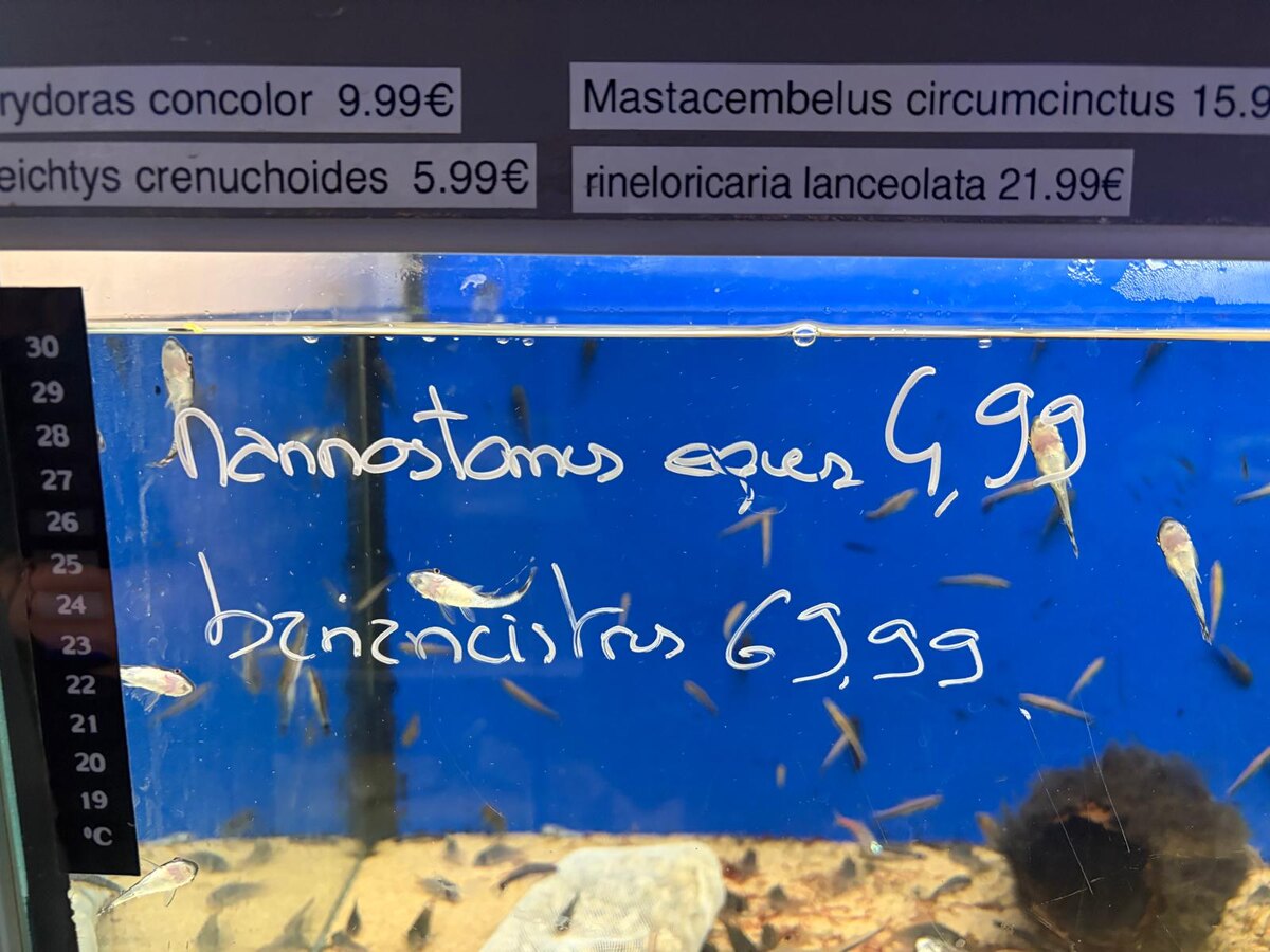 Честно признаюсь, я не знала ни тех, ни других. Поэтому, когда продавец их назвал, я первым делом полезла в телефон и сфотографировала названия, боясь не запомнить. Это вам не Tetragonopterus, знакомый мне с детства — его название отлетало от зубов, а тут пришлось записывать!