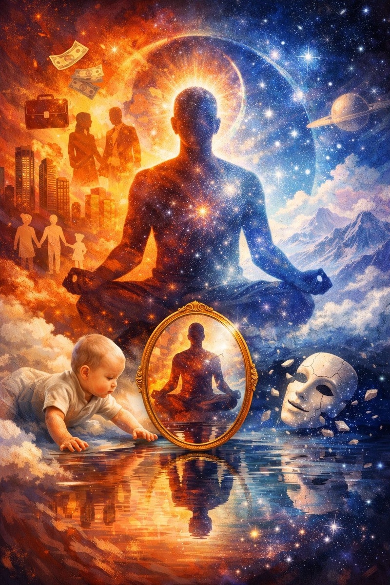В самом начале не было тебя как «кого-то». Не было имени. Не было истории. Не было даже понимания «я есть это тело». Было просто чистое переживание. Без разделения. Без границ. Ребёнок не знает, где он заканчивается и начинается мир. Нет «меня» и «другого». Нет даже самого слова «я». Но постепенно появляется язык. Тебе начинают показывать: это мама это папа это твоя рука это твоё имя И в какой-то момент возникает первая мысль: «это я» С этого и начинается история. На реальность накладываются ярлыки. Формируется образ себя. Появляется ощущение отдельности. Психология это подробно описывает. Карл Юнг говорил о формировании персоны — социальной маски. Зигмунд Фрейд описывал структуру психики через эго. Жан Пиаже исследовал, как ребёнок начинает различать себя и мир. Дональд Винникотт вводил понятие «ложного Я», которое формируется под влиянием среды. Но если посмотреть глубже… Это «я» не находится нигде. Прямо сейчас попробуй честно посмотреть: где ты? В теле? Тогда где