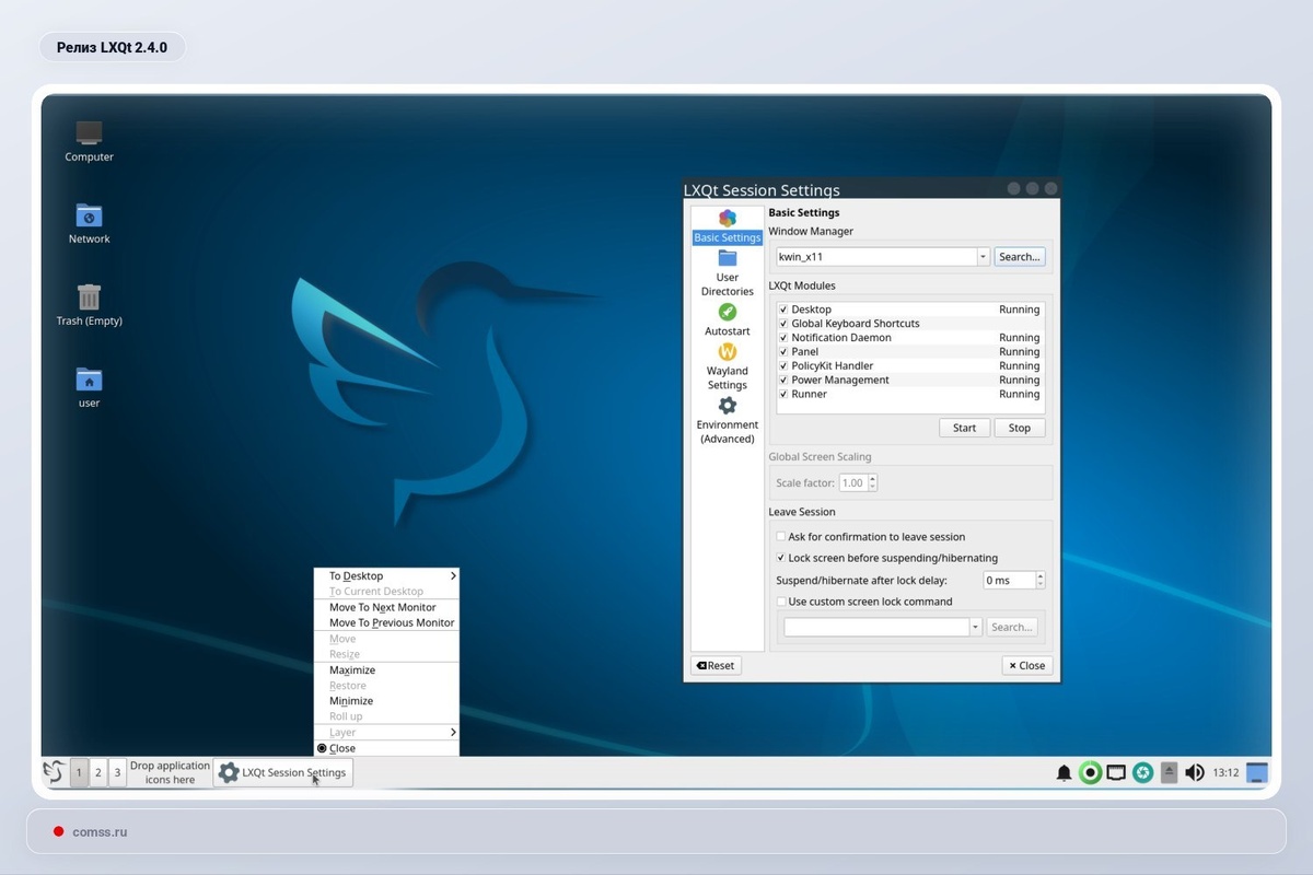 Релиз содержит переработанный плагин громкости на панели, раздельные настройки сеансов X11 и Wayland, отдельные таймауты монитора для сети и батареи. Сборка по-прежнему совместима с Debian Trixie https://www.comss.ru/page.php?id=20353