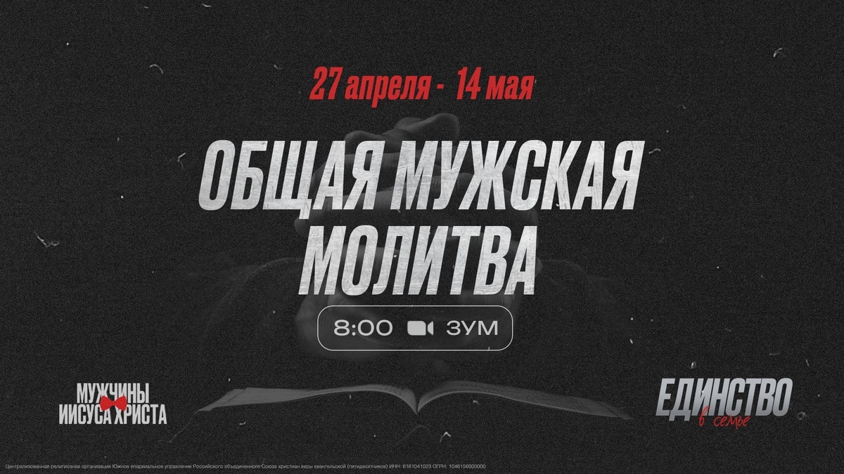 ! В понедельник, 27 апреля, во всей церкви «Христианская миссия» стартует общая мужская молитва. Каждый день с 8:00 до 9:00 мы будем собираться на платформе ЗУМ — в Слове и в молитве. Это будет время подготовки к Всероссийской мужской конференции «Мужчины Иисуса Христа. Единство в семье». В эти дни мы затронем ключевые сферы жизни мужчины. Каждый день — отдельная тема и направление, чтобы мы могли глубже понимать волю Божью и молиться правильно. Верю, что уже во время молитвы Бог будет производить внутренние изменения. И это главная идея конференции — метаморфоза — перерождение человека во Христе. Как гусеница становится бабочкой — так происходит преобразование внутри человека. В греческом языке слово "бабочка" переводится как “душа”. Поэтому давайте приготовим путь для Иисуса, чтобы Он преобразовывал нашу душу и вёл нас в то призвание, которое Он для нас определил.