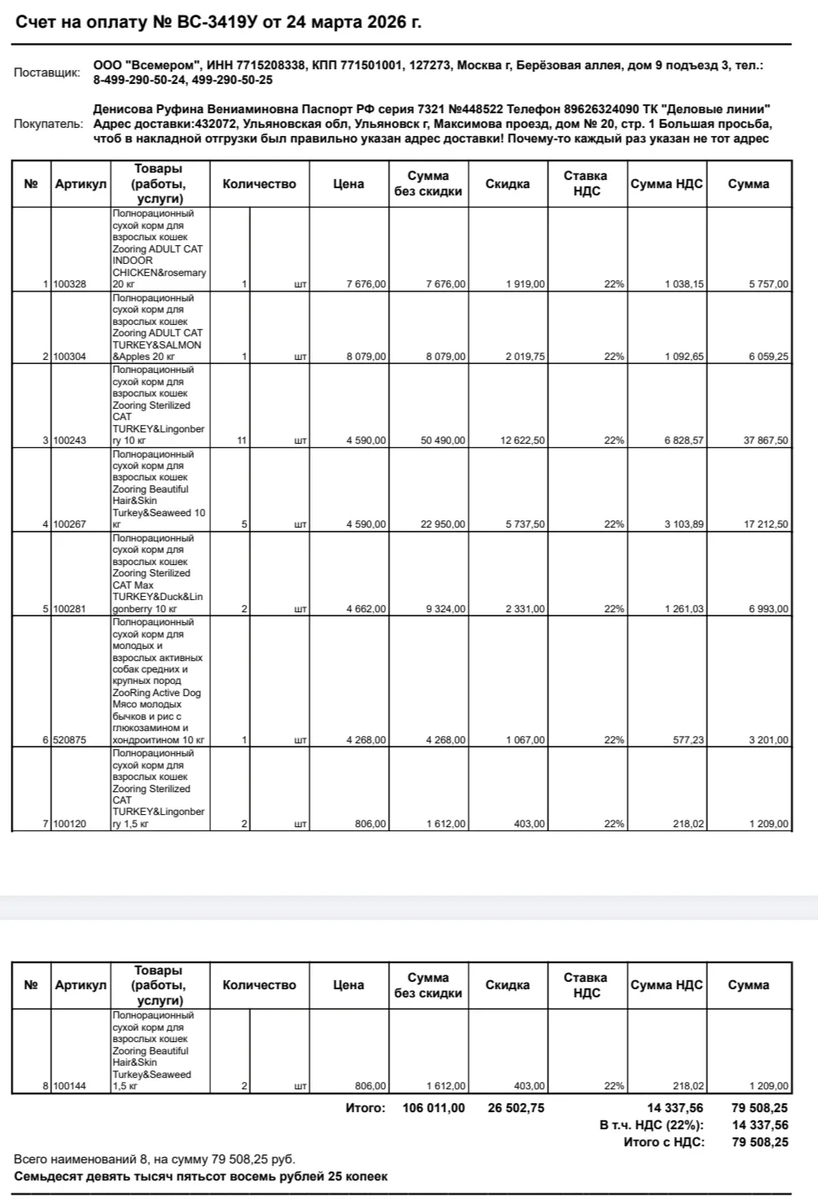 Мы снова ко всем с огромной просьбой о помощи нашей передержке🙏. Нами была закуплена очередная большая партия сухого корма Зооринг для наших милых котеек. Корм- самая большая финансовая нагрузка на наши плечи, потому что оплата сразу, в рассрочку нельзя. И вот мы каждый раз, закупив одну партию начинаем уже по немного откладывать на другую. Но каждый день ещё и другие нужды, есть и не запланированные, в виде новых больных питомцев, жизнь и здоровье которых всегда в приоритете, поэтому без вашей помощи ну очень нам сложно конечно все это дается, да практически многое просто невозможно🙏 В чеке общая сумма за корм, половина из которого для наших домашних передержек. Эту часть суммы мы оплачиваем сами, а вот за вторую половину очень просим посильной помощи, хоть немного возместить огромнейшие для нас траты🙏 С теплотой и искренней признательностью ко всем, наш небольшой волонтерский коллектив очень просит помощи на корм, очень нужный для здоровой и сытой жизни наших питомцев 🙏❤️ ✅ Кошел