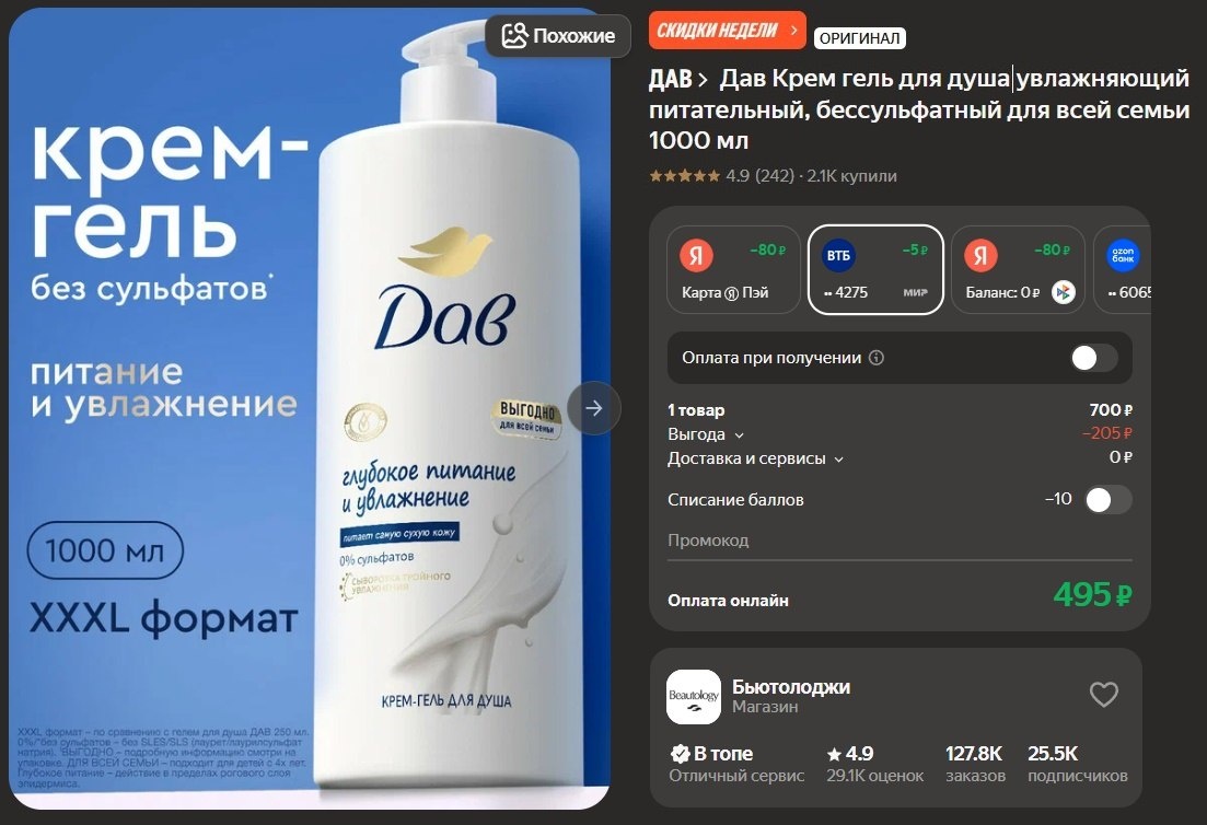 ➡️ Посмотреть Самая низкая цена: в перерасчёте 250 мл выйдут за 124 ₽ (гель универсальный, а не только для женщин)! На некоторых аккаунтах цена при оплате по карте Яндекс Пэй еще дешевле - 420 ₽ за 1 000 мл (классический рандом цен от Яндекс Маркет)! Также рекомендуем проверить приложение «Яндекс Пэй» и выбрать новую еженедельную категорию кэшбэка. #разное #яндекс_маркет #yandex_market #yandex #яндекс —————— 🔠 КАТАЛОГ ПРОМОКОДОВ