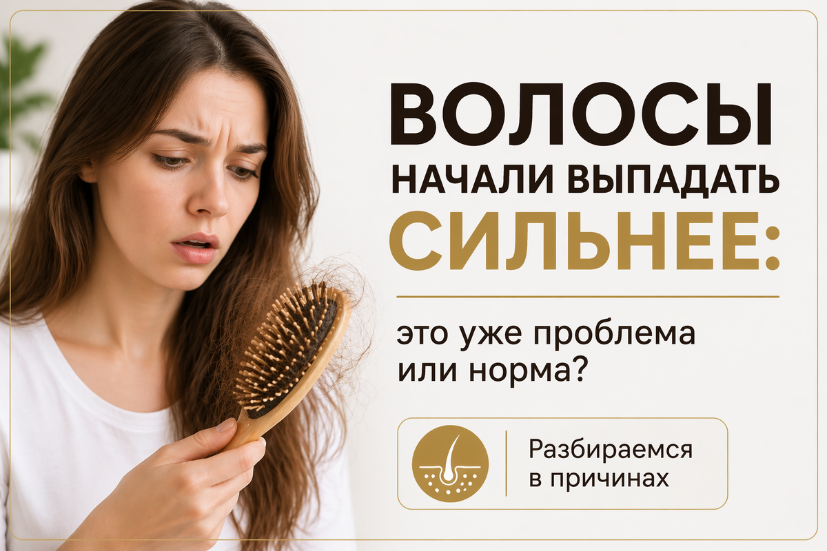 На их месте постепенно вырастают новые, поэтому густота остаётся прежней. Но если вы видите, что выпадение усилилось и отличается от привычного - стоит обратить на это внимание. Иногда усиленное выпадение связано с временными факторами и проходит самостоятельно. К таким причинам относятся: В этих ситуациях организм реагирует на изменения, и через некоторое время состояние волос обычно улучшается. Есть симптомы, которые говорят о том, что проблему лучше не откладывать: Если вы наблюдаете такие изменения - это повод разобраться в причине. Причины могут быть разными и часто связаны с внутренними процессами: В