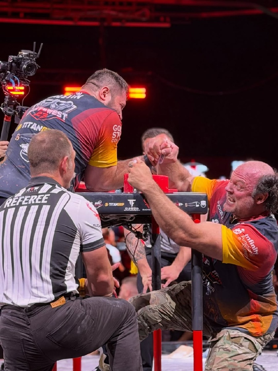 У канадских любителей АРМа сегодня есть официальный повод веселиться всю неделю напролёт! 4:1 — с таким счётом 50-летний Девон Ларратт в главном армфайте EvW-23 одержал уверенную победу над сибирским тяжеловесом Виталием Лалетиным. «Честно, это был настоящий шок. Ларратт побеждает со счётом 4:1», — написал в своём ТГ-канале Игорь Сладко. Но, на наш взгляд, было бы правильнее написать: «Это был настоящий шок. Виталий Лалетин уступил со счётом 4:1». Уже в первом раунде, когда канадец сразу выбил Виталию кисть, стало понятно, что плана «Б», которого хватило бы сибирскому тяжеловесу на весь армфайт, у него нет. Верхом Виталий бороться уже не мог, а в трицепс он умеет именно может додавливать, а не вести в такой технике весь поединок. "Удивительно, что многие рукоборцы, которые привыкли выбивать кисть другим, совсем не уделяют внимание своей кисти" - размышляет Дзамболат Цориев, добавив, что ему все больше и больше нравится Ларратт. Здесь следует добавить, что этот поединок канадский рукобо