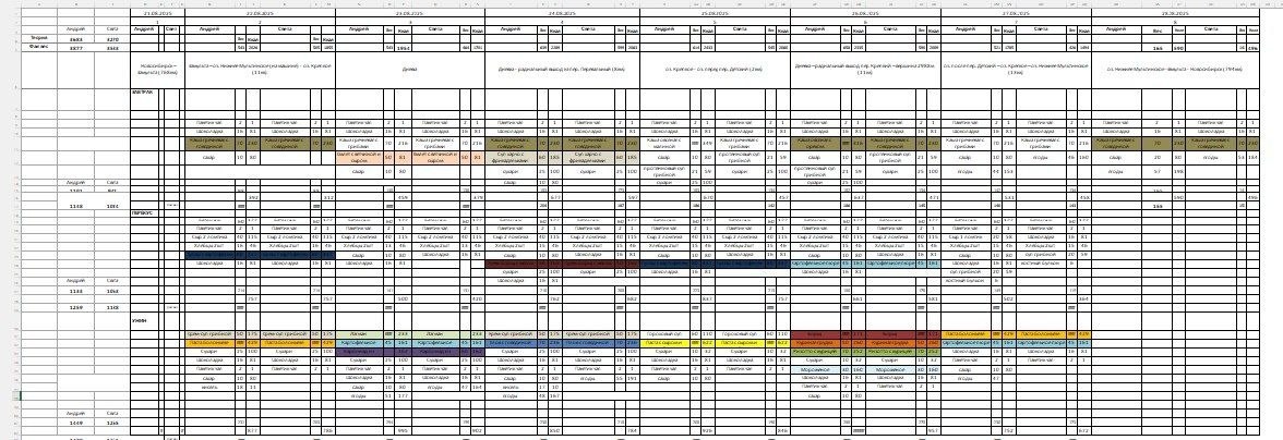 В этот раз мы решили не заморачиваться с сушкой продуктов, а взять всё готовое. Благо, на маркетплейсах сейчас можно найти гору сублимированной продукции. Выбрали себе подходящую еду по отзывам и давай составлять табличку.