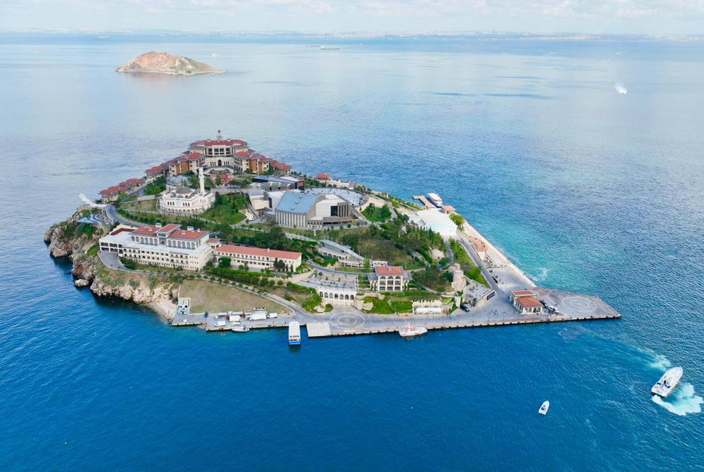 На острове сделали променады, расставили скульптуры, открыли кафе у воды. Есть отель, мечеть, библиотека, конференц-зал. Обед в ресторане на пирсе обошёлся мне в 550 лир: дорадо, салат, айран. Цены нормальные по стамбульским меркам, а вид такой, что турки за соседним столом не выпускали телефоны из рук.