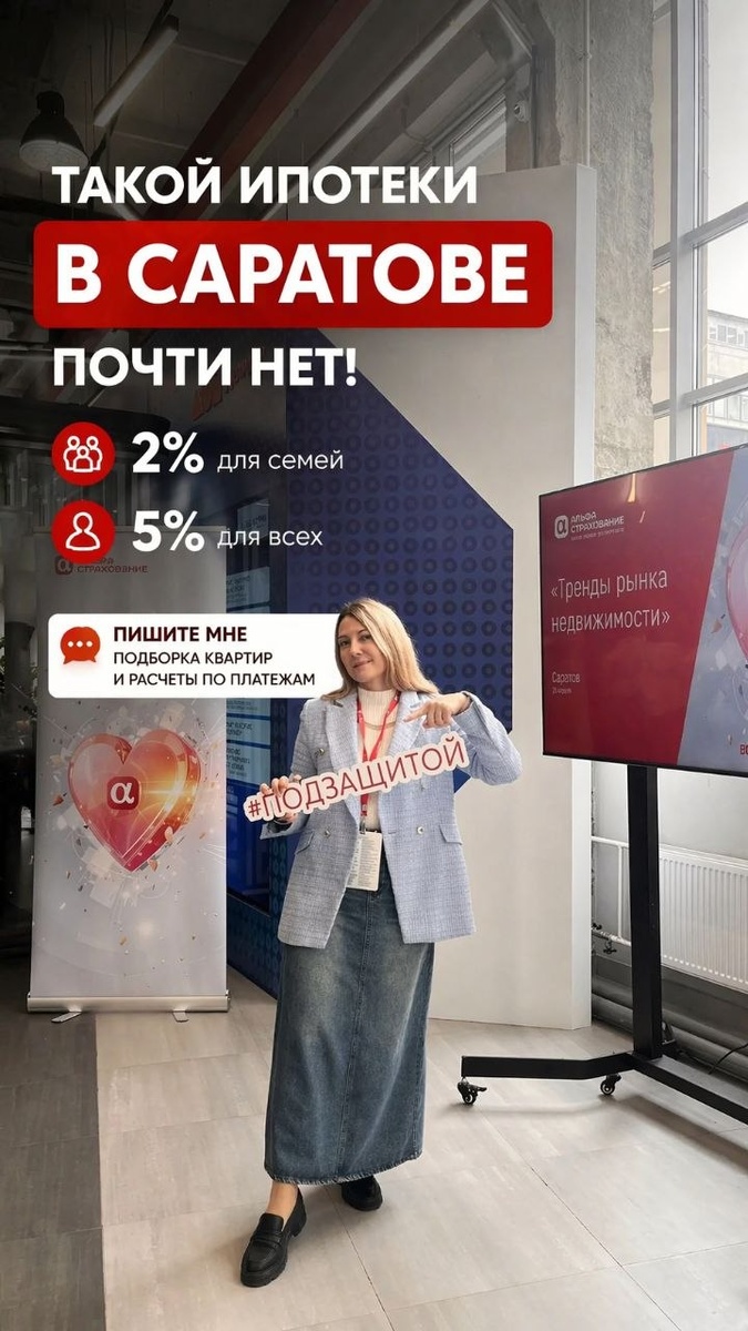 2% для семей. Около 5% для всех остальных. В нашем городе новостроек строится немного, и большинство программ по ипотеке сегодня уже значительно выше. Поэтому когда появляется подобное предложение - оно быстро разбирается. Сейчас открыта возможность купить квартиру в одной из самых интересных новостроек Саратова на специальных условиях. Что по программе. Ставка около 2% для семейной ипотеки Около 5% по специальной программе для остальных покупателей Такие условия позволяют зайти в покупку значительно спокойнее, чем по стандартным банковским ставкам. Почему на этот проект сейчас обращают внимание мои клиенты. • современный новый дом • продуманные планировки • новый благоустроенный двор • детские и спортивные площадки • развивающаяся инфраструктура района • хороший вариант как для жизни, так и на будущее Для Саратова такие ипотечные программы появляются крайне редко. Обычно они действуют ограниченное время или на небольшой пул квартир. Я подготовила подборку квартир и расчёты по