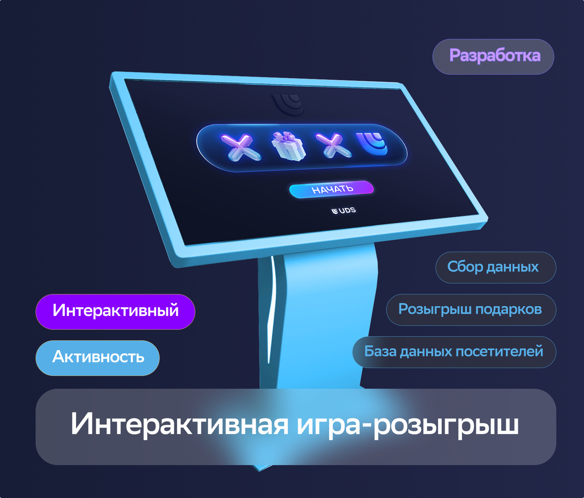 О проекте Для крупного застройщика мы разработали интерактивную игру-розыгрыш подарков на сенсорном столе. Главная задача — не просто развлечь гостей мероприятия, но и собрать контактные данные потенциальных покупателей, а также привлечь их в digital-каналы компании. Механика оказалась настолько эффективной, что у стола постоянно выстраивалась очередь из желающих испытать удачу. Посетитель касается экрана и вводит номер телефона (или сканирует QR-код). Система проверяет, участвовал ли уже этот человек сегодня — защита от повторных попыток. На экране появляется анимированное колесо фортуны (или другой визуал — под стиль бренда). Гость нажимает кнопку «Крутить» и наблюдает за вращением. Варианты исходов: Если подарок не выпал, игра предлагает дополнительную попытку за предоставление email-адреса. Посетитель вводит почту и снова крутит колесо. Игроку предлагается последняя попытка: подписаться на Telegram-канал застройщика (на экране отображается QR-код). После подтверждения подписки — тр
