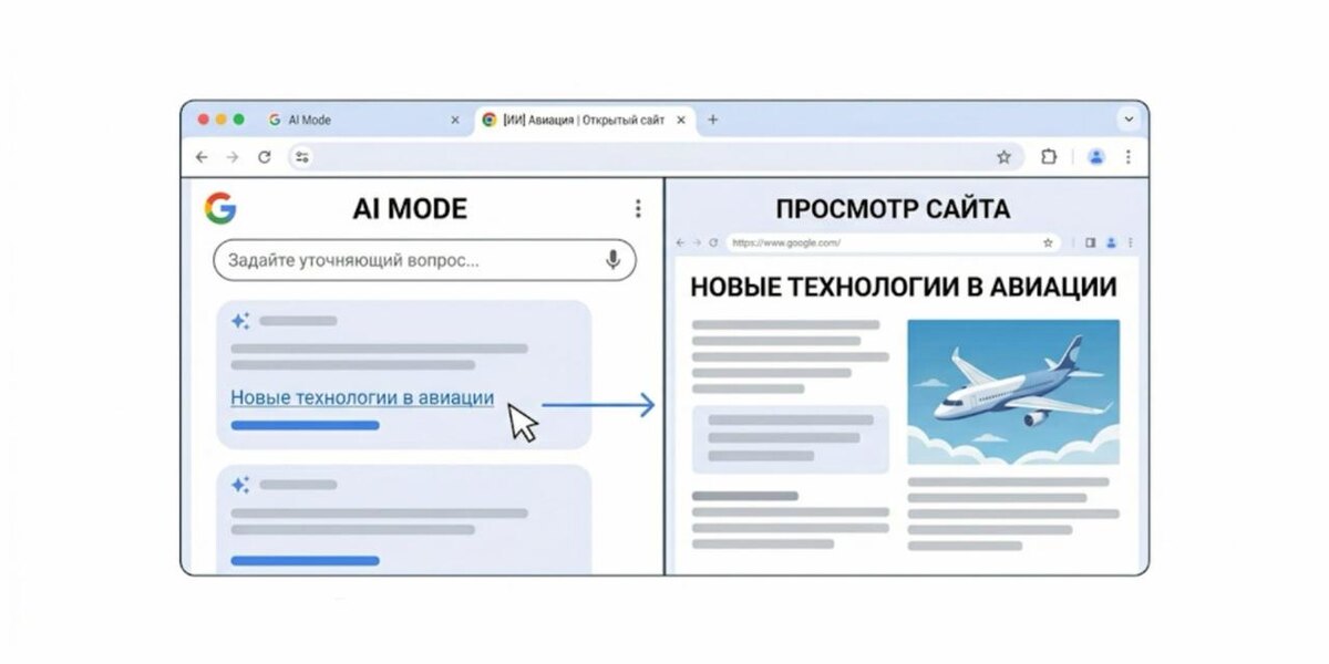 🔍 Google AI Mode в Chrome: теперь можно смотреть сайт рядом с ИИ-поиском