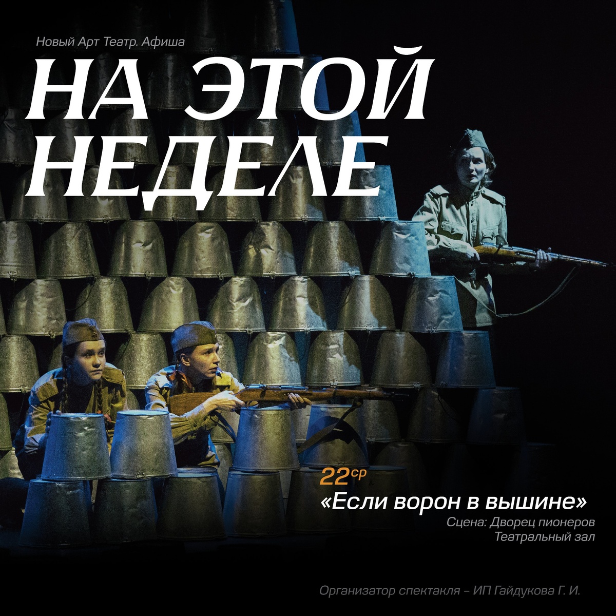 «Если ворон в вышине» — история о настоящих человеческих чувствах: храбрости, надежде, дружбе и любви, которым есть место и в самый разгар войны, ведь всё это и есть Жизнь. «Если ворон в вышине» 🪖 спектаклю 20 лет! 22 апреля | Сцена: театральный зал Дворца пионеров. Организатор спектакля – ИП Гайдукова Г. И.