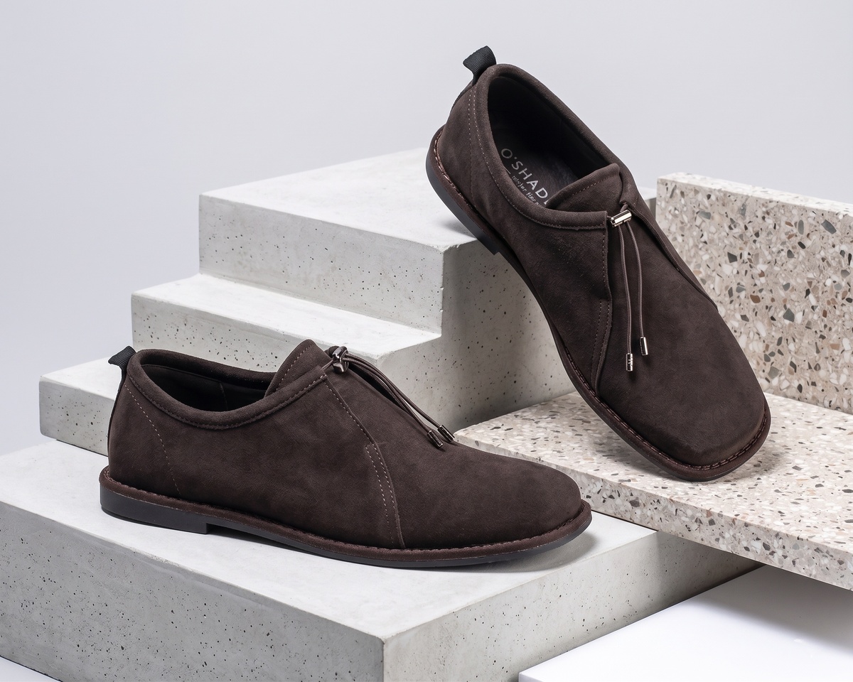 Глянцевая поверхность часто требует безупречного состояния одежды вокруг. Любая складка или помятый край джинсов на фоне лака становится заметнее. Матовая кожа и замша решают эту задачу иначе. Они поглощают свет, смягчают контрасты и работают как естественный фильтр для всего силуэта. Посмотрите на пример: пара темно-коричневых замшевых туфель с плоской подошвой и шнуровкой на металлических наконечниках выглядит уютно, но не по-домашнему). Такая обувь не кричит о трендах, она говорит о вкусе.