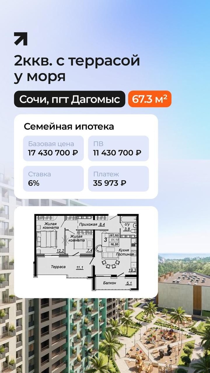ЖК Чайные холмы Сочи • 1 к. кв Базовая цена 10 458 700 ₽ Ставка 6% Первый взнос 4 458 700 Платеж 35 973 • 2 к.кв Базовая цена 14 893 200 ₽ Ставка 6% Первый взнос 8 893 200 ₽ Платеж 35 973 ₽ • 2 к.кв., с терассой Базовая цена 17 430 700 ₽ Первый взнос 11 430 700 ₽ Платеж 35 973 ₽ Нужен индивидуальный расчёт по базовой ипотеке? Звоните 👇 📲 +79649155583 #недвижимость Сочи #своя квартира #ипотека