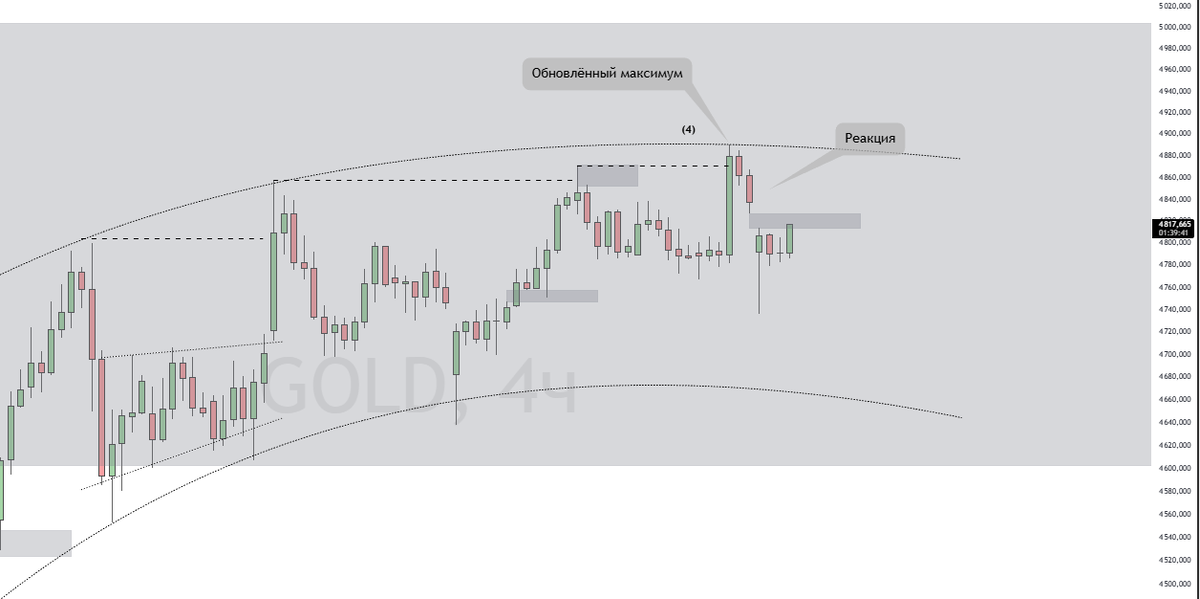 Если смотреть на котировки золота, видно - цена обновила максимум, и на первый взгляд кажется, что рост только начинается. Но в реальности ситуация интереснее. Сейчас на графике момент, который часто становится точкой разворота. И если понимать логику движения - это можно использовать в торговле. В дополнение к предыдущему разбору по Gold https://dzen.ru/a/aeEtlNVcDgvQkM4w