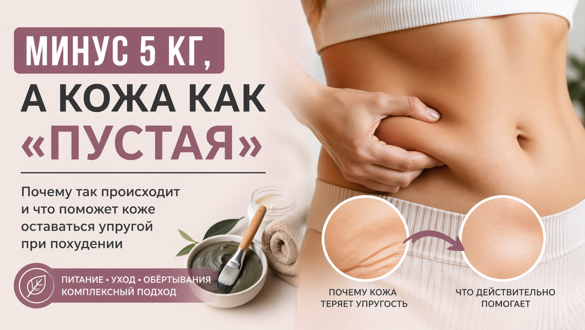 Вы выстроили питание, начали соблюдать режим, перестали есть на автомате, и вес наконец-то сдвинулся с места. Минус 3–5 килограммов, одежда сидит свободнее, цифра на весах радует И вот здесь многие впервые сталкиваются с неожиданной реакцией тела. Казалось бы, вы делаете всё правильно, худеете без резких ограничений, спокойно, с понятным рационом — а кожа будто не разделяет ваш энтузиазм. Она теряет плотность, становится тонкой, менее упругой, местами появляется ощущение «пустоты», как будто ткани не держат форму так, как раньше. И это вызывает больше вопросов, чем сама цифра на весах Даже при грамотно выстроенном питании любое снижение веса — это изменение привычного состояния организма: объёмы уменьшаются, ткани перестраиваются, меняется распределение жидкости, запускаются адаптационные процессы.