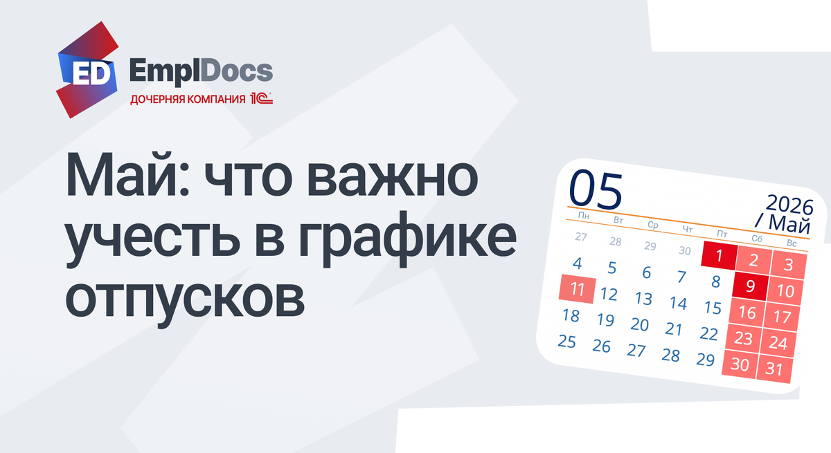 В мае нас ожидает (производственный календарь тут): ▫️1–3 мая (пятница–воскресенье) — Праздник Весны и Труда; ▫️9–11 мая (суббота–понедельник) — День Победы; ▫️предпраздничные дни: 30 апреля, 8 мая — сокращенные. Здесь логика сотрудника понятна — пару дней отпуска и отдых заметно длиннее. Но есть нюанс — в 2026 году май снова не самый выгодный месяц для отпуска, поскольку: ➡️ всего 19 рабочих дней, ➡️ чем меньше рабочих дней в месяце, тем «дороже» стоит каждый из них, ➡️ зарплата считается исходя из этих дней, а отпускные - из среднего заработка за год. ⬇В итоге сотрудник может потерять в деньгах, даже если отдыхает столько же. Лучше не запрещать, а подсветить альтернативу — месяцы с большим количеством рабочих дней. В 2026 году это июль, август, октябрь и декабрь. И аккуратно донести это до команды — можно скинуть разбор, обсудить на встречах до начала "ажиотажа". Чтобы таких ситуаций было меньше, важно заранее работать с Графиком отпусков. Как работает "График отпусков" (ГО) в КЭДО?