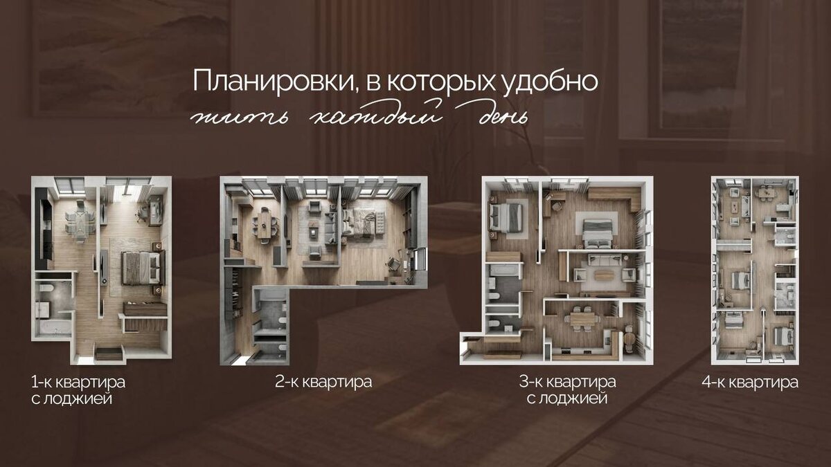 Мы не просто считаем квадратные метры. Каждую планировку продумали так, чтобы в ней было удобно жить каждый день. Учли удобное зонирование и легкое перемещение по квартире. Добавили много естественного света, особенно в кухне-гостиной. Именно там обычно проходит большая часть семейного времени. Отдельные зоны хранения помогают сохранять порядок без лишних усилий. Планировки остаются комфортными не только сейчас, но и через несколько лет, когда семья изменится или просто захочется больше воздуха и свободы. Это планировки, в которых действительно приятно жить каждый день.