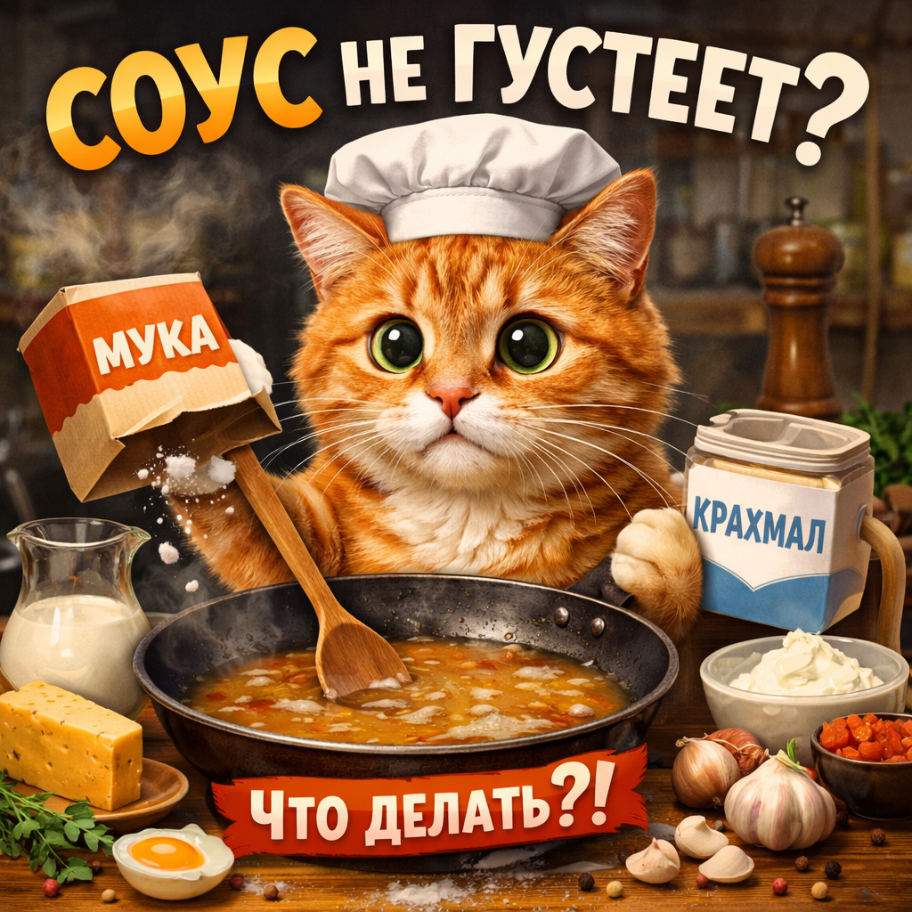 Соус умеет испортить настроение с какой-то особой подлостью. Вроде всё шло хорошо: мясо обжарено, овощи пахнут как надо, специи легли ровно, вкус почти собрался… а в сковороде вместо красивого, гладкого, обволакивающего соуса — жиденькая печаль. Не соус, а бульон с амбициями. И главное, по закону кухонной подлости именно в этот момент выясняется, что ни муки, ни крахмала дома нет.