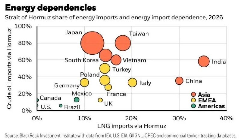 BlakRock: кто больше всего зависит от импорта энергоносителей через Ормуз