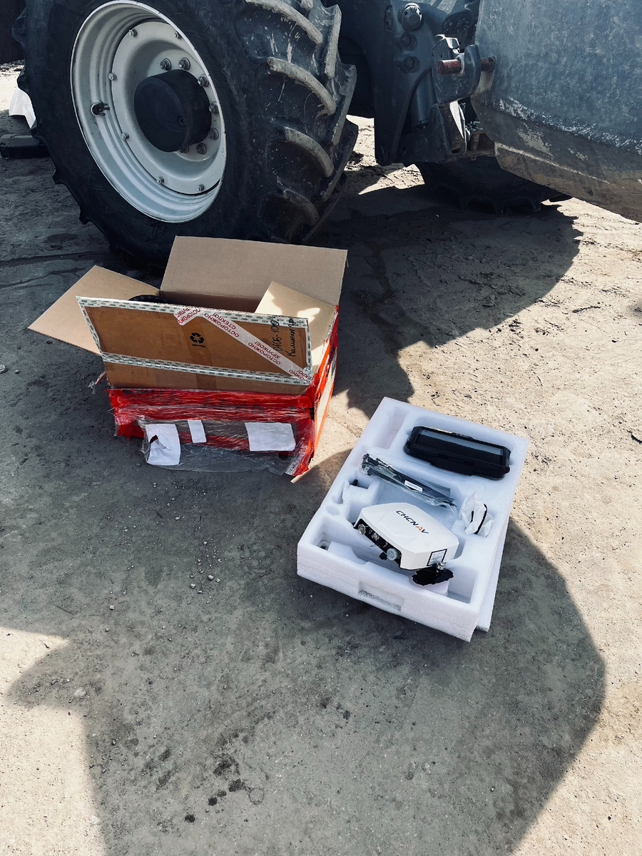 Транспортное средство: трактор Valtra Автопилот: CHCNAV NX 510 SE (электрический) Электрический автопилот — в коробке (до установки) GNSS-антенна — установлена на крыше трактора Камера — установлена на тракторе Монитор в кабине — видно успешное подключение к RTK NTRIP‑модем добавили к системе)