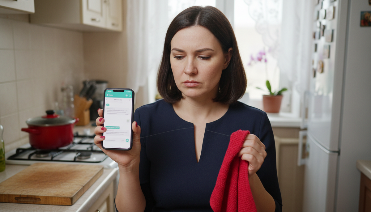 Стою на кухне. В левой руке - телефон Галины Ивановны, в правой - тряпка, которой только что вытирала стол. Борщ на плите булькает. Свекровь ушла в комнату за очками. Снимки внука - где-то в галерее. А я смотрю в переписку, которую не должна была видеть. И листаю. Вверх. Ещё вверх.