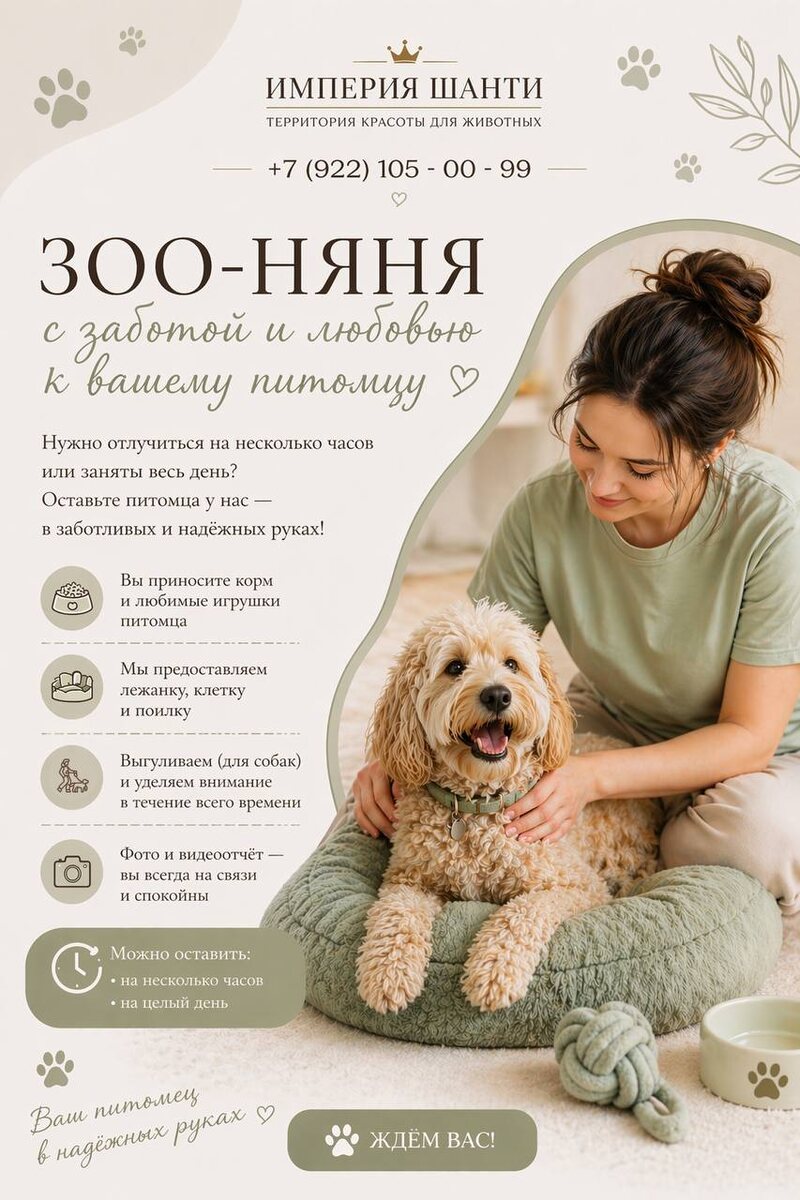 салон Империя Шанти предлагает услугу зооняни🐾 Зоо-няня в «Империи Шанти»