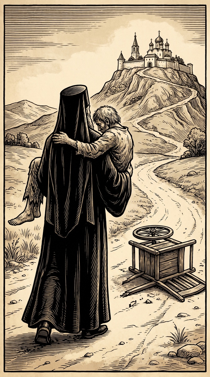 Как подвижник нес Господа! ...️Сорок дней Господь будет ходить по земле. Он может встречаться с каждым под разным видом является всегда тогда, когда человек спешит и когда ему некогда. Однажды в монастырь шел подвижник Арсений. Видит: впереди нищий с трудом на коляске передвигается. Взял его на плечо и понес. Подходит к монастырю, глядит: братья все собрались, и подумал, что это послов каких-либо встречают. Стал подходить ближе: игумен ко всем обращается и говорит: «Вот Арсений Господа несет!» А подвижник все удивляется. А эта ноша все легче и легче: чем ближе к монастырю – тем легче его ноша.