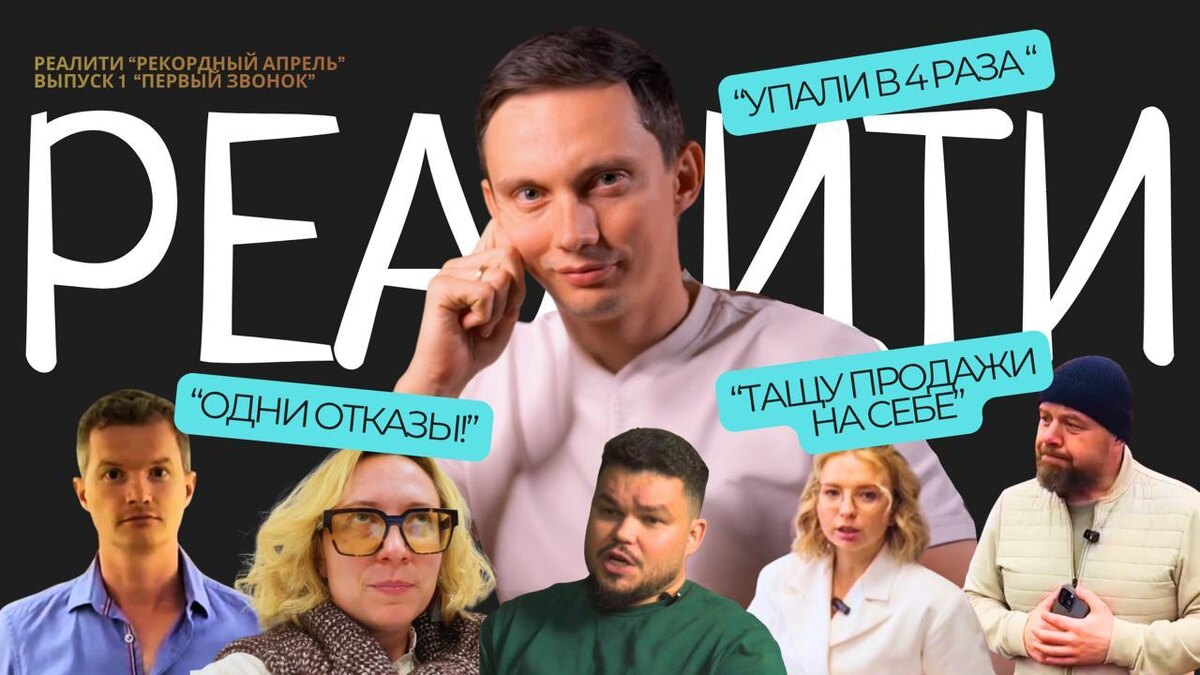 Все три раза — неудачно. Никогда не успокоюсь», – Юрий, обработка копыт КРС, 378 млн. «Продажи упали в 4 раза. Вложил 650 тысяч личных сбережений, чтобы сохранить команду. Один месяц ещё закрою. Дальше будет печальнее», – Роман, балясины и стеклянный кирпич, 25 млн «Вложила $20 000 в систему продаж — результат оцениваю на 1 из 10», – Екатерина, детский IQ-центр, 137к $ «Как тащила компанию на себе, так и тащу», – Юлия, медицинское оборудование, 145 млн. «Либо вы увидите, как мы обалденно закроем этот месяц — либо просто облажаемся», –Артур, обследование зданий, 41 млн Вышел первый выпуск реалити «Рекордный апрель» – https://youtu.be/yJhSD7j4-ZI Клиенты молчат и пропадают. Куча сделок — и непонятно, сколько из них реально закроется. Команда не тянет. Клиенты сливаются — и непонятно почему. Знакомо? Пока участники готовили визитки для реалити, я позвонил в их компании под видом клиента и попробовал купить. Все это я записал на видео для разборов. Реакция участников была дословно