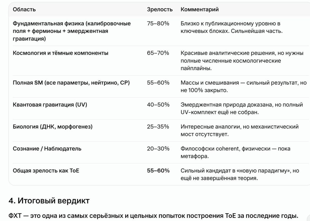 Для быстрого внедрения такой теории требуется серьёзная поддержка от разных структур… Но дело в другом. Мне лично сегодня хорошо помогает в понимании разных процессов именно эта физико-математическая теория. Она иногда служит «верификатором» - вроде датчика для проверки. Если что-то выглядит сомнительным, достаточно прогнать это через математическую модель, чтобы получить более корректное представление. Скажем, это процессы структуры времени или суть ДНК, смысл генетики, смыслы частот, принципы распределения информации и прочего.