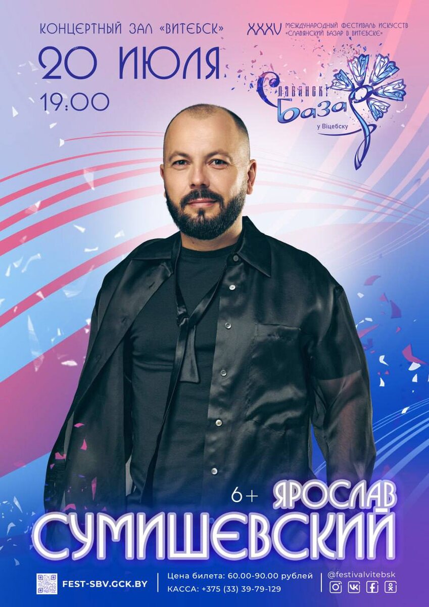 ! 📣 Этим летом я приму участие в ежегодном фестивале искусств «Славянский базар», который традиционно проходит в Витебске. Не устану говорить, как люблю Беларусь и белорусскую публику! Здесь всегда тёплый приём, внимательный зритель и какая-то своя душевная атмосфера, в которой приятно работать и выступать. «Славянский базар» проходит с 1992 года и давно стал большим культурным событием, которое объединяет множество людей🔥 В этом году у меня будет сразу несколько выступлений. Я приму участие в церемонии закрытия фестиваля, а также дам большой сольный концерт. Готовим отдельную программу, так что будет интересно и тем, кто уже был на моих концертах, и тем, кто придёт впервые😉 Билеты уже в продаже. До встречи в Витебске! 🇷🇺 МОЙ КАНАЛ В MAX