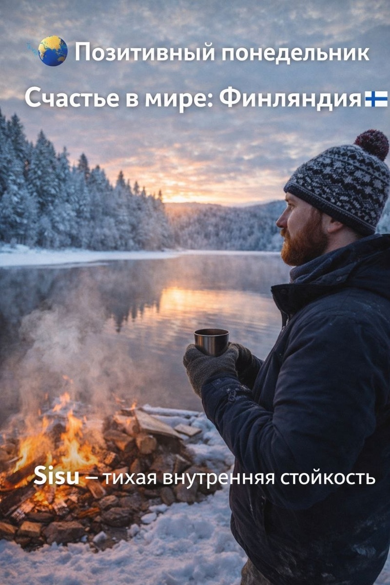Счастье в мире: Финляндия 🇫🇮 Финляндия много лет подряд занимает первые места в рейтингах самых счастливых стран мира. И каждый раз это вызывает удивление: долгие зимы, мало солнца, холод, сдержанные люди. Где здесь счастье? Ответ часто звучит в одном коротком финском слове — sisu. ❄ Sisu — тихая внутренняя стойкость Sisu сложно перевести. Это не героизм и не «я выдержу любой ценой». Скорее — спокойная внутренняя устойчивость, умение идти дальше без надрыва и драматизации. Sisu — это: • принятие реальности такой, какая она есть • доверие к себе • способность выдерживать сложные периоды • движение маленькими, но надёжными шагами 🌲 Страна тишины, холода и уюта Когда я была в Финляндии, меня поразило, насколько телесно ощущается зима. Пронизывающий холодный ветер — такой, что сразу пробирает до костей. И при этом люди: • спокойно передвигаются на велосипедах, • выходят на прогулки даже на 20–30 минут, • живут так, будто холод — не враг, а просто часть реальности. Т