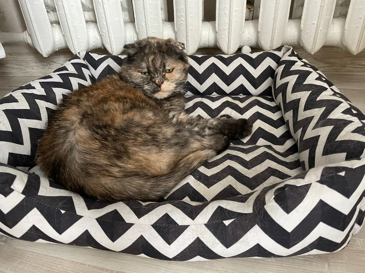 Она прикрывает глаза, отворачивается и всем своим видом показывает, что она устала и просто хочет отдохнуть. Она даже не смотрит на приятельницу, которая ест курицу. Ей это совершенно не интересно. Когда Буся уходит, я зову Няшу, чтобы та угостилась оставленным кусочком. На мой призыв кошка не реагирует и даже голову в мою сторону не поворачивает.