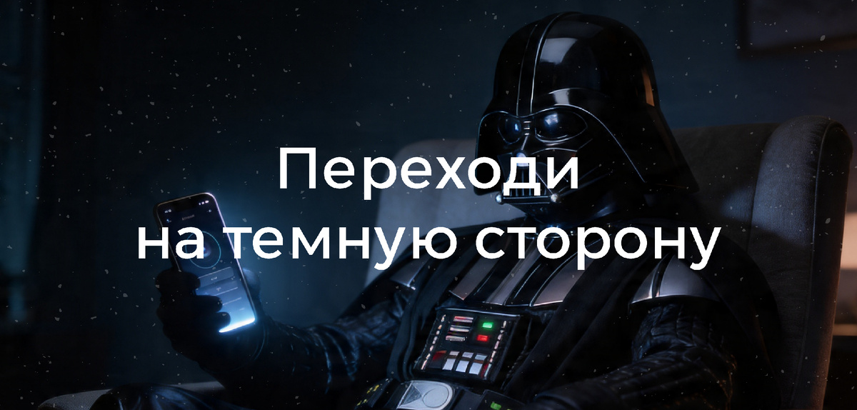 Подпишитесь, чтобы не тратить часы на то, что можно прочитать за 5 минут. Листала статистику и случайно наткнулась на цифры про темный режим. Стоп. Это требует внимания. 82% пользователей включают dark mode, когда он есть. Даже на десктопе почти 83%. Три четверти маков и андроидов сидят в темноте. Темная сторона действительно сильнее. А я всё думала, почему клиенты жалуются на «белую простыню». Секрет прост: мир уже давно выбрал тьму. Но не всё так просто. Факт 1. 82% пользователей iOS включают темный режим. На Samsung Galaxy - 75%. Империя наносит ответный удар. Факт 2. На десктопах и ноутбуках - 82,7% выбирают dark mode. Это не только мобильная история. Факт 3. Экономия батареи на OLED-экранах действительно есть, но только при максимальной яркости. В обычной жизни, когда вы сидите в помещении или на улице в пасмурный день, экран светится не на полную мощность. И в таком режиме темный фон почти не экономит заряд. Так что сказки про «полдня лишних» - это миф. Реальная прибавка 10-20 м