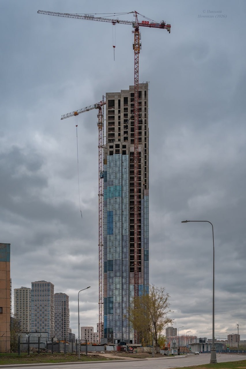 : В кадре запечатлён процесс строительства доминанты жилого комплекса «Марк». Объект расположен в Москве по адресу: улица Автозаводская 23/436. Проектная высота: 150 метров. Съёмка от 19 апреля. #оффтоп 😊 Небоскрёбы России в MAX