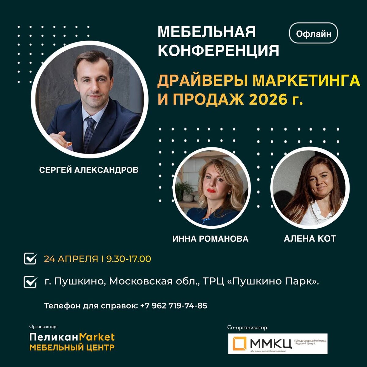 %!!! Так обычно говорят про наши офлайн конференции. Рядом с Москвой, в прекрасном месте мы проводим первую нашу офлайн конференцию в этом году! Почему сейчас? Чтобы вы успели всё внедрить до старта сезона продаж! А он будет! Поэтому нужно приезжать и получить для себя максимально свежую, актуальную и полезную информацию про рынок, тренды, ниши, мотивацию, организацию работ и план Великих Побед! Подробности здесь https://pushkino-retail-park.ru/ Участие бесплатно, так как наши спонсоры так решили! Ждём! Вкусности, подарки приготовили! #конференция #стратегия #ассортимент #мотивация #персонал #ПеликанМаркет 🟧 Сергей Александров | Вся правда о мебельном бизнесе