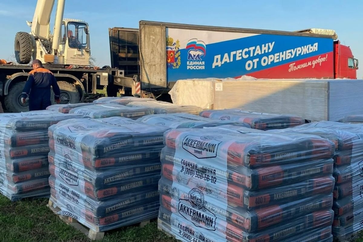 Порядка 80 тонн стройматериалов в 4-х фурах встретили из Оренбургской области. Их разгрузили на склад, который накануне организовали волонтеры Единой России при содействии администрации Хасавюртовского района в селе Тутлар. Село и лагерь партии расположены в непосредственной близости от пострадавших сел Адильотар и Кадыротар. В числе гуманитарного груза – цемент, сухая строительная смесь, гипсовая строительная плита и минеральная плита (утеплитель). В разгрузке фур из Оренбургской области участвовали волонтеры Единой России - студенты Училища олимпийского резерва города Хасавюрта, сотрудники Управления культуры Хасавюртовского района, а также сотрудники и спасатели МЧС России. - Стройматериалы будут использоваться при восстановлении пострадавших домов жителей. «Спасибо большое региональным отделениям партии и, в частности, секретарю Оренбургского отделения Олегу Димову, губернатору Оренбургской области Евгению Солнцеву за такое внимание, поддержку и помощь», – отметил уполномоченный