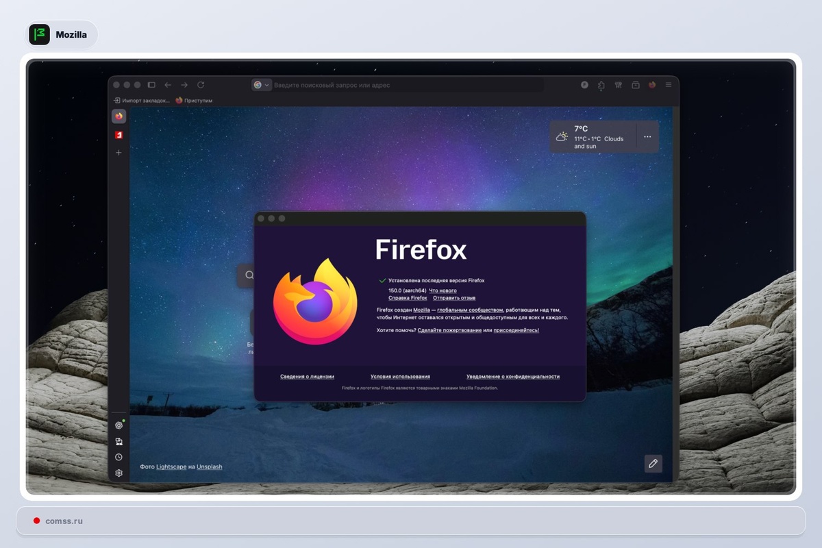 Стабильные версии Firefox 150, 140.10 и 115.35.0 ESR доступны для загрузки #Mozilla #Firefox Mozilla выпустила Firefox 150 и обновления ESR (140.10.0, 115.35.0). В новой версии – усилена защита локальной сети, улучшен PDF-просмотрщик и добавлена поддержка эмодзи GTK в Linux. ESR-релизы содержат только исправления безопасности https://www.comss.ru/page.php?id=20354