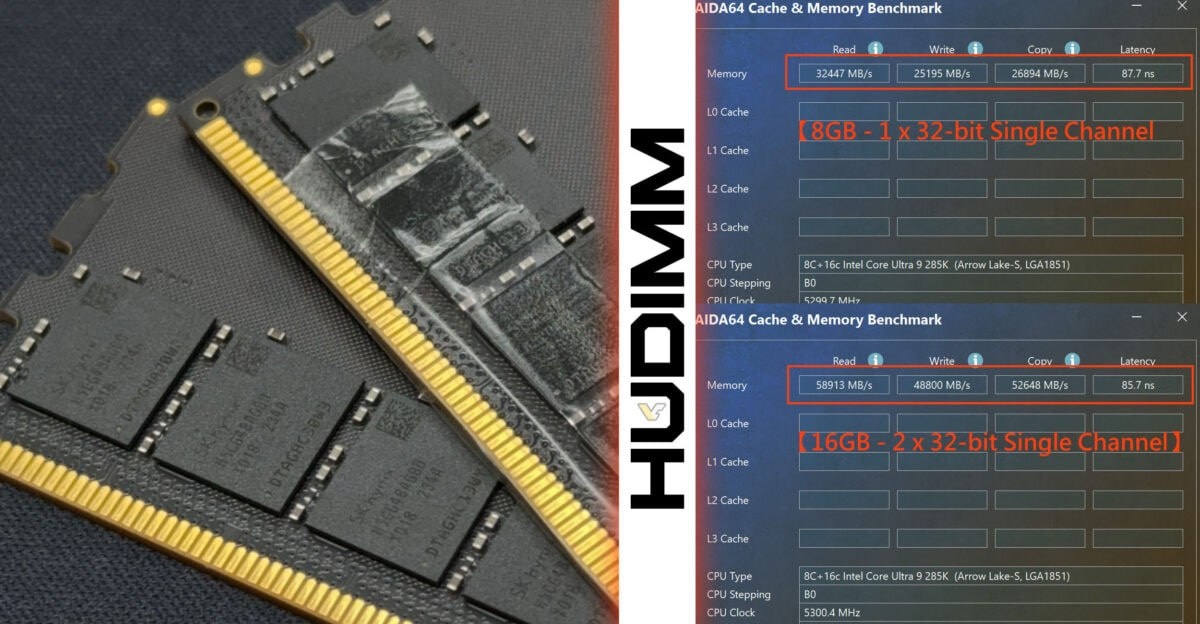 Чуда не произошло, новые бюджетные модули HUDIMM почти вдвое уступают по пропускной способности классической DDR5.