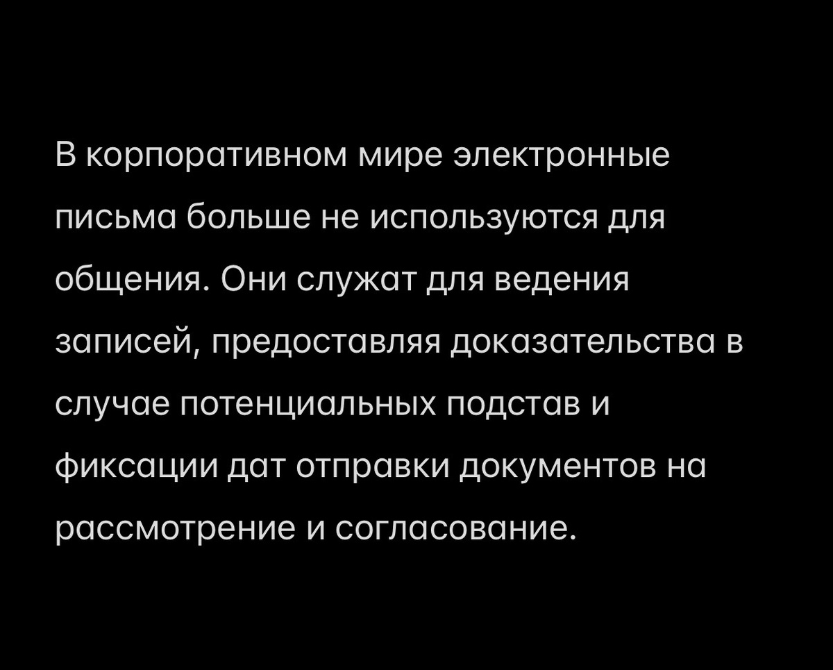 90% рабочих конфликтов — это не злой умысел, а разное понимание договоренностей. Письмо или сообщение снимает эту проблему заранее.