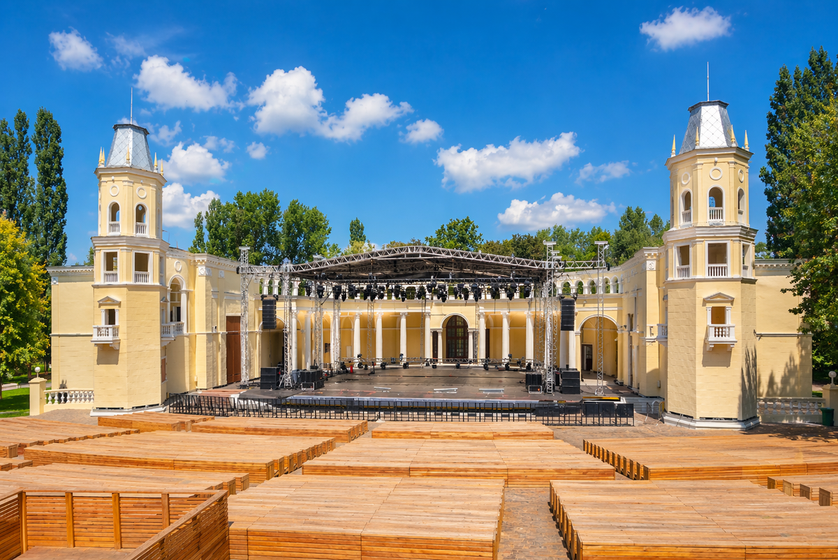 👉ЗАЛ: Раполагается Зелёный театр под открытым небом, рассчитан на тёплое время года и хорошую погоду. 🌳Деревья вокруг позволяют насладиться природой, особенно атмосферно во время му