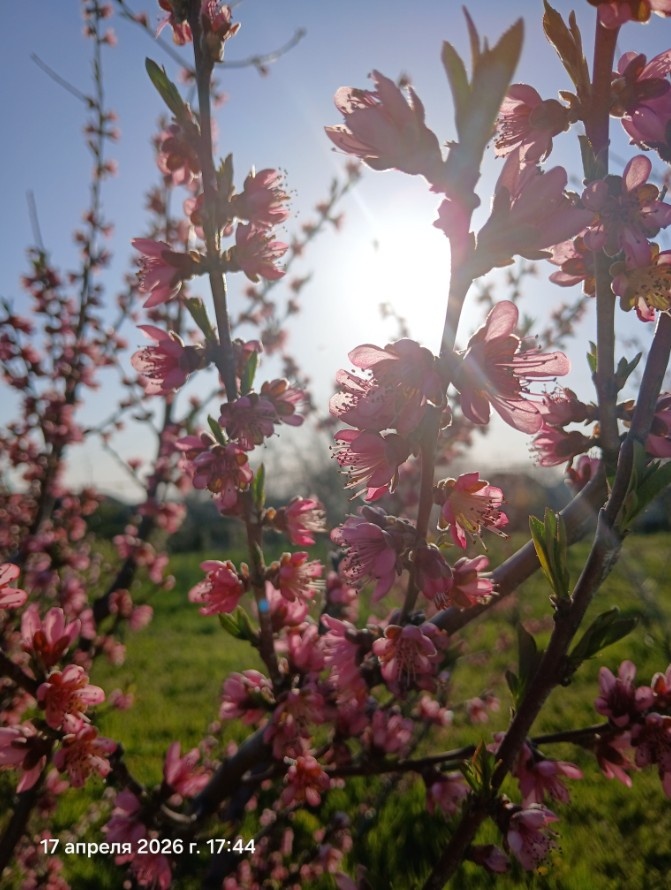 И веток розовый разлет Расцвёл в апреле персиковый сад,