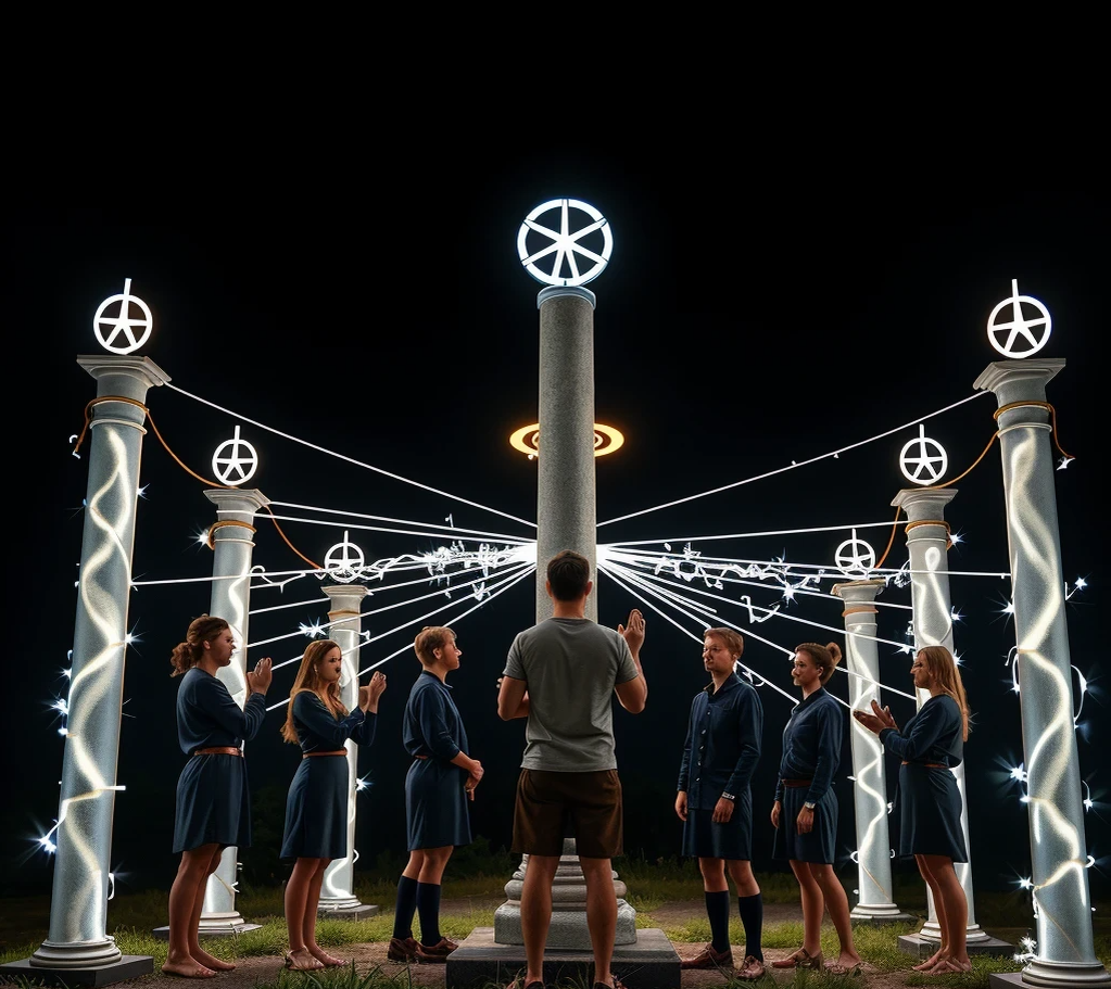 — В 03:17 мы одновременно коснёмся символов у своих колонн, — сказал он. — Затем удержим контакт 13 минут. Если кто‑то почувствует, что не справляется…