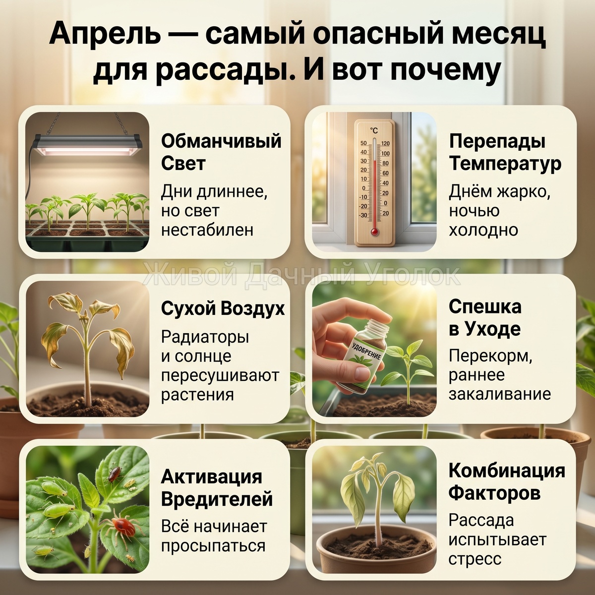 Раньше я думала, что это просто совпадение. Ну мало ли, условия меняются. Но когда это повторилось несколько раз подряд, я начала внимательно наблюдать. И оказалось, что апрель — действительно самый коварный месяц для рассады. И дело здесь не в одной причине, а сразу в нескольких, которые накладываются друг на друга.