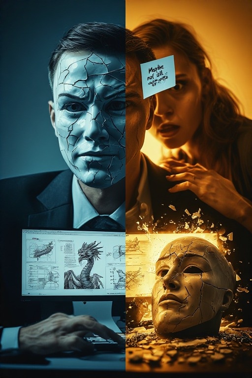 Маску не в буквальном смысле, конечно. Скорее вторую личность. Она жила внутри, плотно прилегая к душе, почти сросшись с ней. Вежливая улыбка, спокойный тон, лёгкий кивок в ответ на колкости, всё это стало второй натурой. Он научился не реагировать на подколки коллег, не замечать пренебрежительных взглядов начальства, не обижаться на шутки, которые ранили глубже, чем хотелось бы признавать.