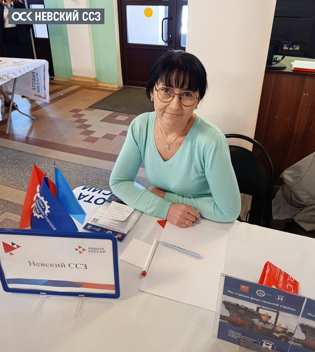 17 апреля 2026 года предприятие ОСК Невский ССЗ приняло участие в региональном этапе Всероссийской ярмарки вакансий, который состоялся во Дворце культуры города Кировска — традиционной площадке для встречи работодателей и соискателей. О ключевых направлениях деятельности завода и открытых вакансиях посетителям подробно рассказали представители предприятия: Сергей Самолетов — заместитель генерального директора по персоналу и административным вопросам и Ольга Сультыгова — специалист по кадрам отдела по управлению персоналом. Соискатели и студенты смогли пообщаться напрямую с представителями завода, узнать об условиях и оплате труда и задать все интересующие вопросы о карьере на судостроительном производстве. Читать далее в ВК Читайте нас в MAX Читайте нас в Дзене ОСК | Невский ССЗ