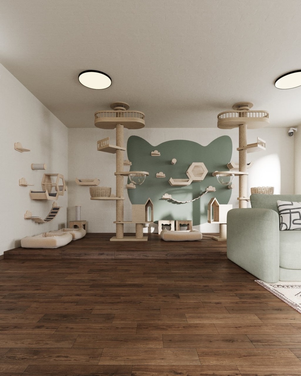 «Кот и Пёс 72» участвует в грантовом конкурсе «Территория Мяу» на создание котокомнат. Грантовый конкурс организован благотворительным фондом помощи бездомным животным «Ника» и Центром изучения питания и благополучия животных с целью создания специализированных пространств для кошек в приютах. На конкурсе мы представляем дизайн-проект котокомнаты в нашем пансионе. Проект для нас разработала команда дизайнеров INTERIOR DESIGN STUDIO из Тюмени. И мы выражаем им огромную благодарность, в особенности Наталье и Даниилу Ильиных, за вклад, творческий подход и готовность поддержать наше дело. Мы с гордостью представляем визуализацию нашего проекта — она наглядно демонстрирует, каким может стать обновлённое пространство пансиона. В новом пространстве кошки смогут: лазать и наблюдать с высоты; уединяться и отдыхать; точить когти; играть; безопасно и удобно передвигаться. Особое внимание уделено зонированию пространства: комфортно будет не только кошкам, но и волонтёрам, и посетителям пансиона.