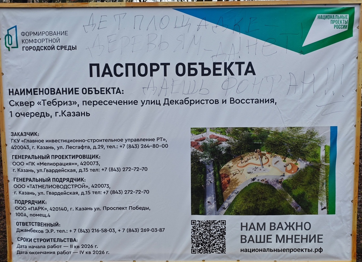 Казанец посетил "зелёные" точки города, где проведут реконструкции в этом году. Сквер "Тебриз" 📷1️⃣▶️4️⃣Преобразования затронут фонтан, клумбы, установят детскую площадку в "иранском стиле", со стороны ул.Декабристов. Местные жители уже подметили, что благоустройство неплохо было бы начать не с детской площадки (их во дворах много, построены за последние годы по программе "Наш Двор"), а именно с фонтана, главной точки притяжения сквера. Окончательного проекта по фонтану нет, жители предлагают воссоздать тот первый фонтан, что был до 80-х в классическом стиле, либо же реконструировать имеющийся, но обязательно сохранив мозаичные покрытия чаш. Сквер облюбован местными собаководами, которые предлагают построить здесь площадку для выгула собак, т.к. рядом их совсем нет. Паспорт выставлен, работы пока не начались. "Ленинский сад" 📷5️⃣ Здесь будет реконструирована входная группа — площадь от памятника Александру Бутлерову до улицы Профессора Нужина. Переосмысление концепции Кроме
